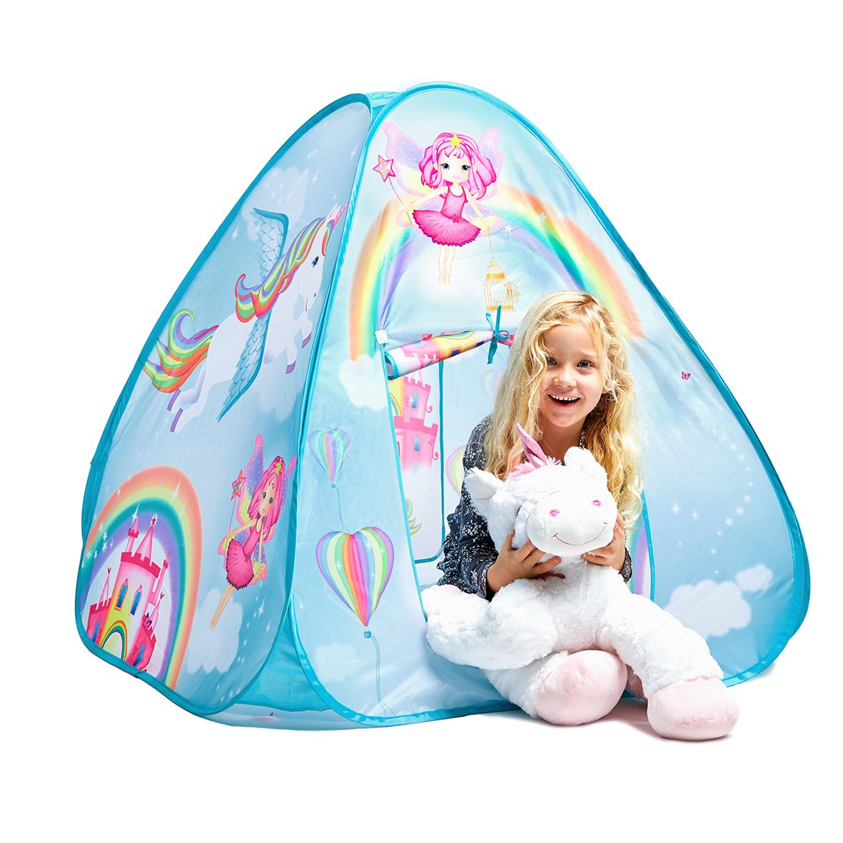 With this Fairy Dream tent from Pop-it-Up kids will be in a totally different world! The imagination will be endless. The play tent is made of 100% polyester and has a special throw-up technique that makes it easy and quick to set up. The included storage bag ensures that you can easily store the play tent. The play tent has a front and back door that can stay up.