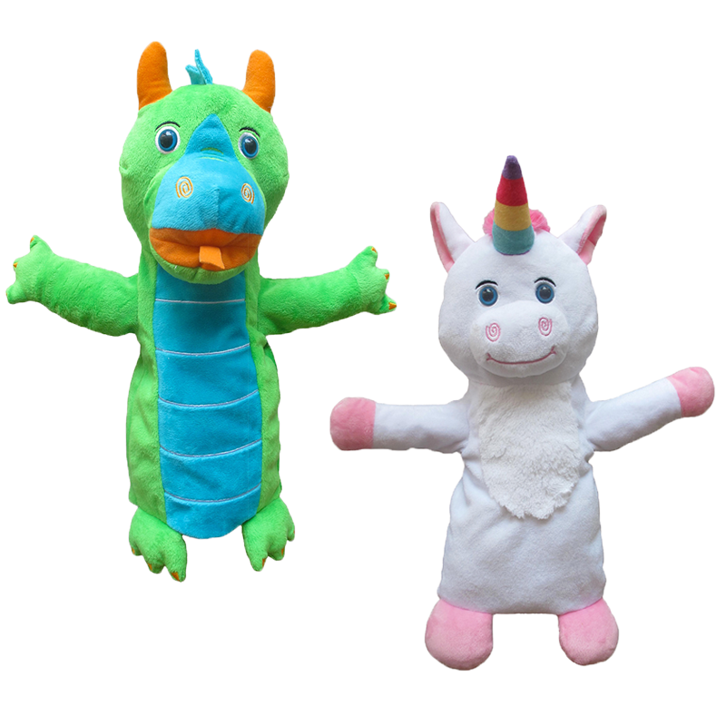 With the 2 large hand puppets and the Pop-it-Up fairytale Zig Zag theater, playing puppet theater is a real party. Go on an adventure with dragon and unicorn and experience exciting adventures. The puppet show consists of a triptych with 3 different fantasy scenes to play.
