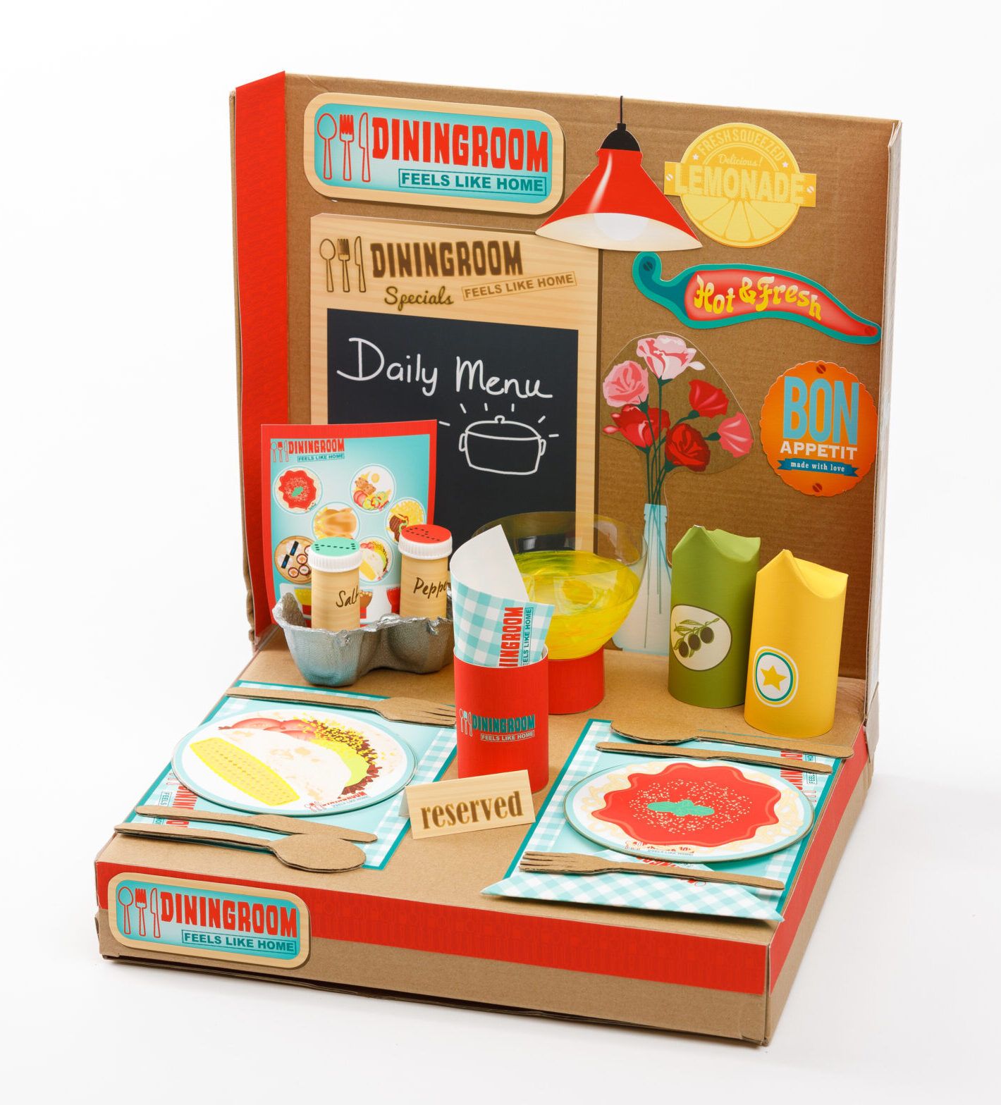 With this homely Kitchen playworld Re-Cycle-Me box, your little one can have hours of creative fun! The box contains different materials to create a large kitchen to play with! You only have to collect milk cartons, cardboard boxes, cans, cd’s, toilet rolls, plastic bottles, lids, glue and scissors yourself!