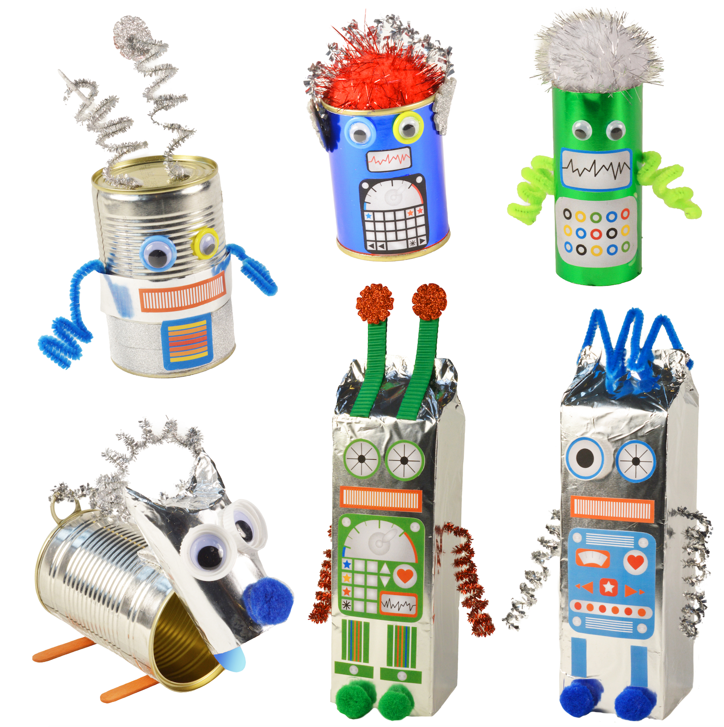 With this cool Robot themed Re-Cycle-Me box, your little one can have hours of creative fun! The box contains different materials to create 6 different robots. You only have to collect milk cartons, cans, toiletrolls, glue and scissors yourself!